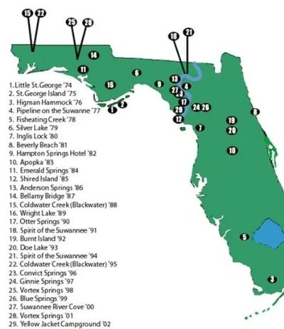There has been a lively debate on where EXACTLY all of the past Decemberfest sites have been. To the right is a map that was compiled after the 2002 Decemberfest. Below is a list of all sites and years, to the best of the past and present 'Festers' memories. You will note that there are some discrepancies between the two lists on this page. I wasn't there for all of them so all I can do is present the content for discussion.